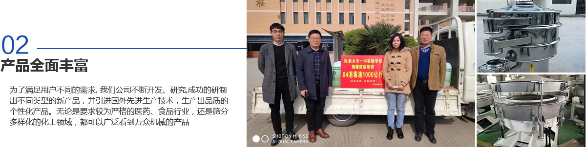 新鄉(xiāng)市萬眾機(jī)械設(shè)備有限公司是生產(chǎn)振動機(jī)械、篩分設(shè)備和過濾設(shè)備的專業(yè)廠家之一,擁有生產(chǎn)設(shè)備、雄厚的技術(shù)力量、完善的檢測手段、嚴(yán)格的管理體系。是河南省的商標(biāo)之一,被河南省科學(xué)技術(shù)廳頒定為高新技術(shù)企業(yè),為新鄉(xiāng)市“守合同重信用企業(yè)“。質(zhì)量信得過產(chǎn)品、質(zhì)量服務(wù)消費(fèi)者滿意企業(yè)、合格產(chǎn)品等榮譽(yù)稱號。擁有自主進(jìn)出口經(jīng)營權(quán),產(chǎn)品遍布各地,并遠(yuǎn)銷北美、西歐及東南亞等地區(qū)。